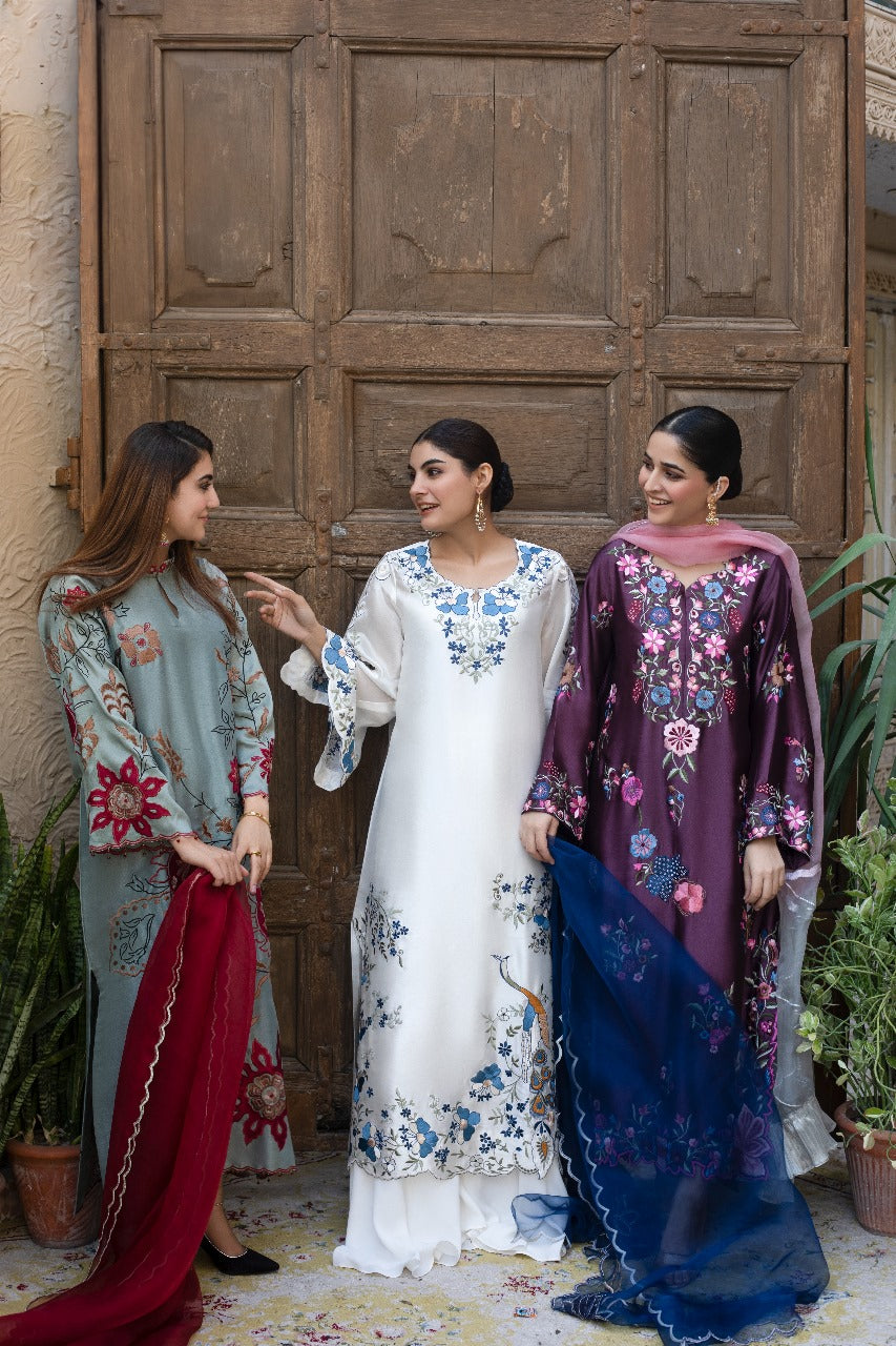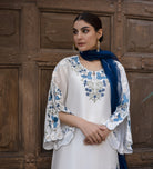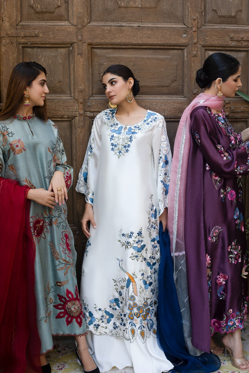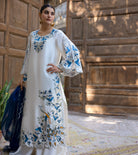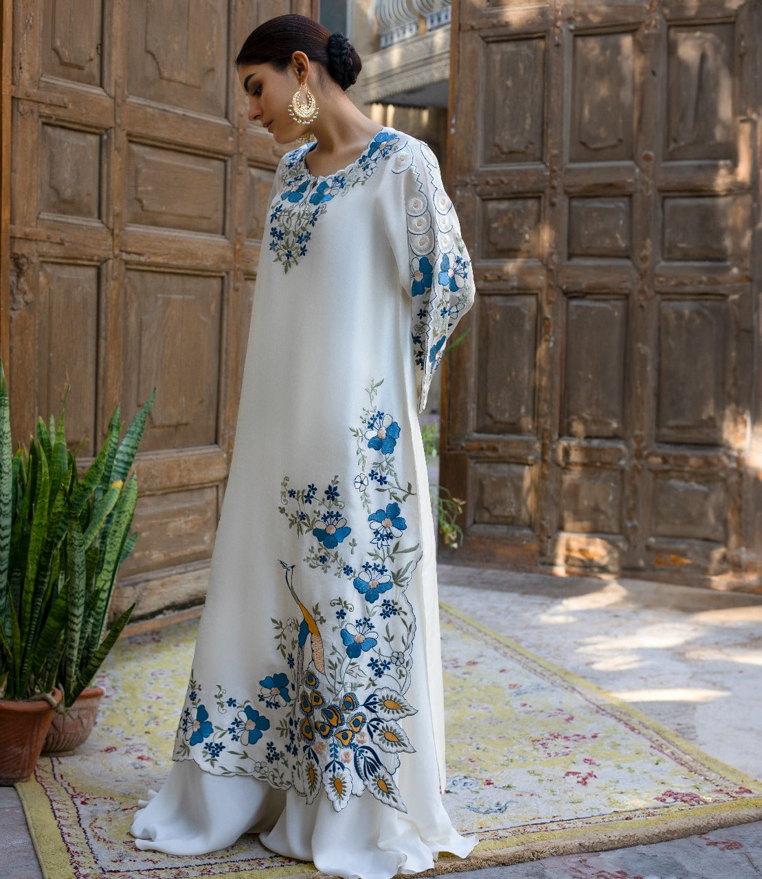 An ivory shisha-silk long shirt, gracefully cut and adorned with delicate floral detailing — timeless, elegant, and perfect for every occasion. A piece that speaks beauty in its most effortless form.