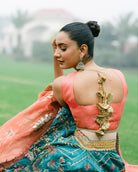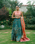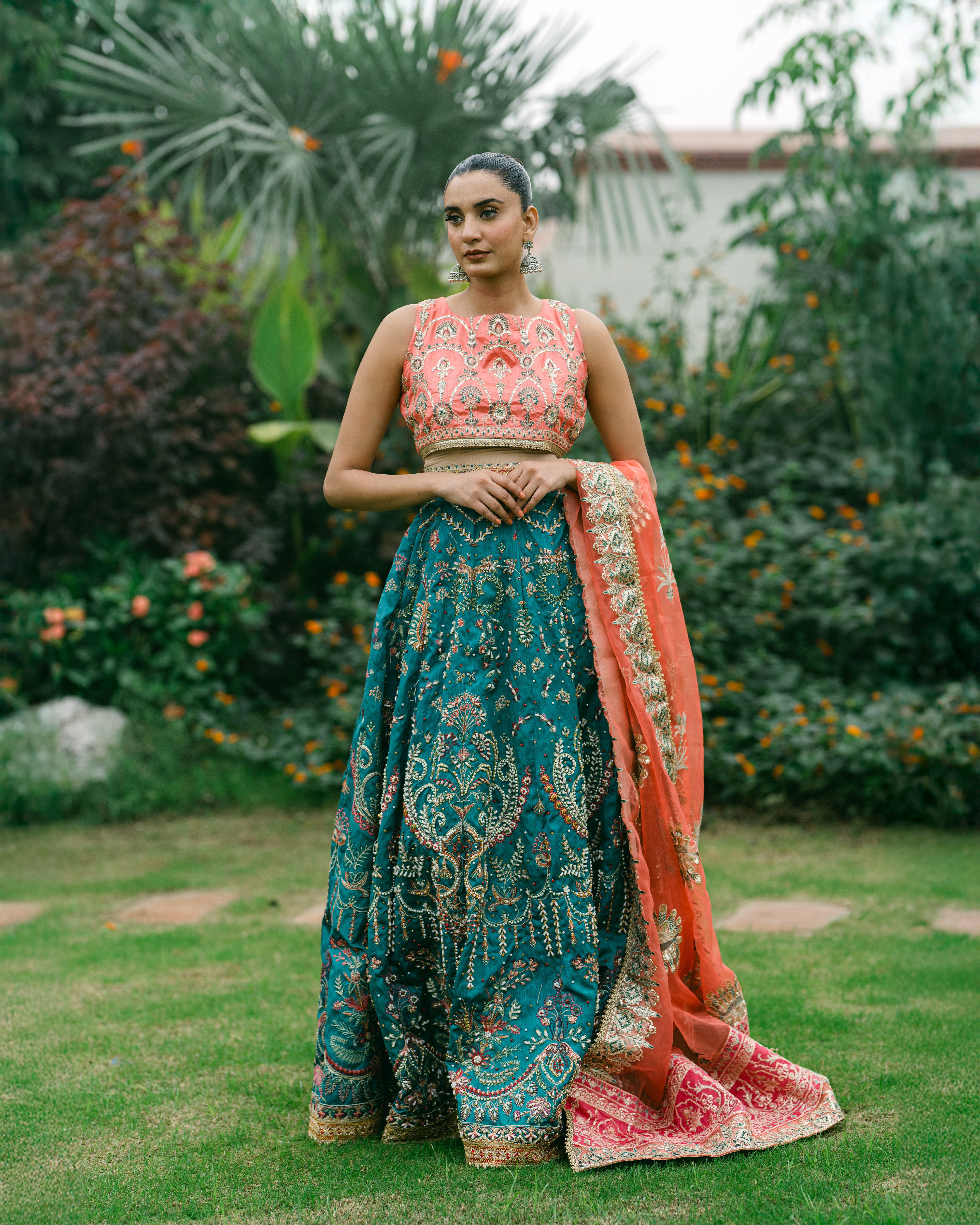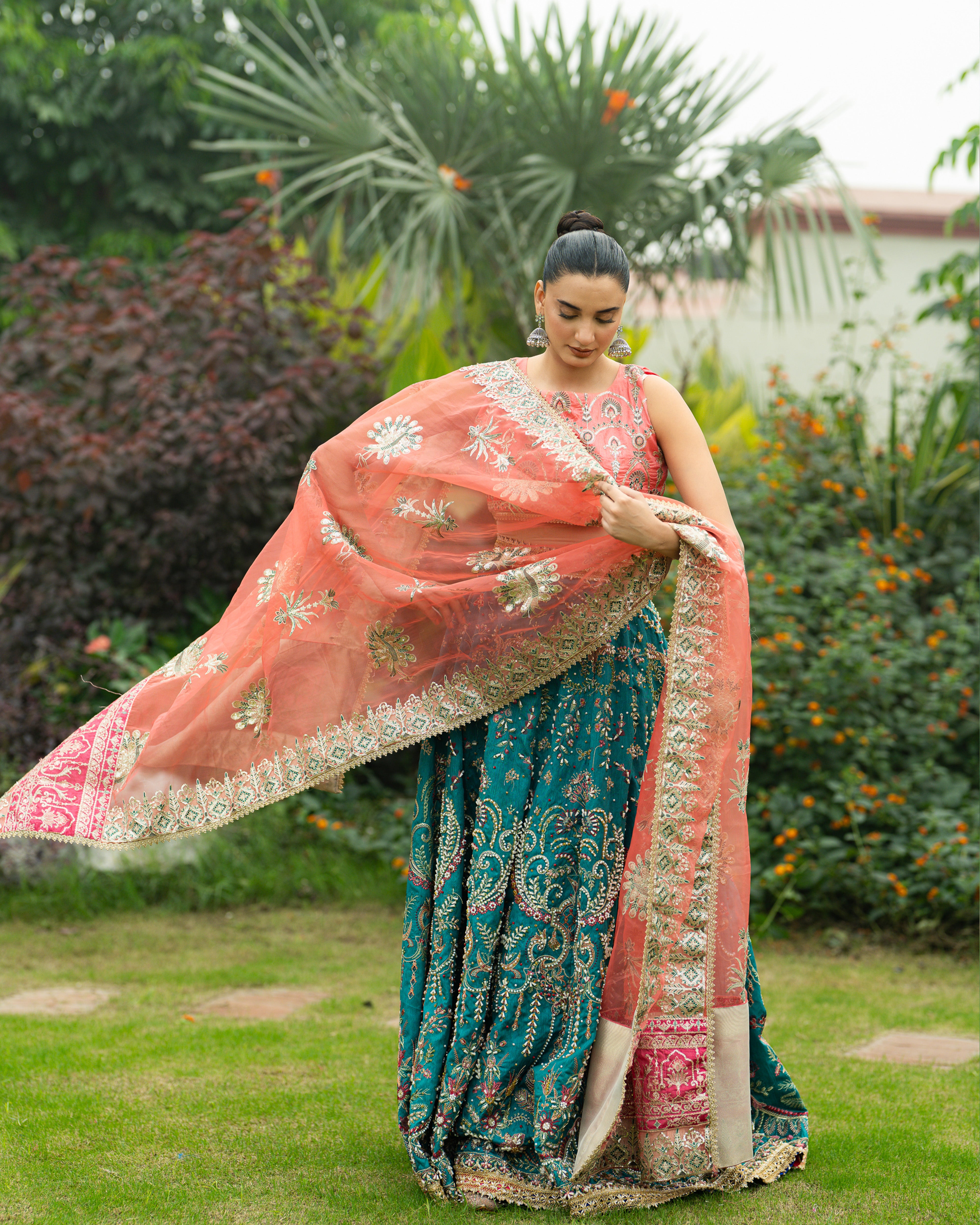 The green lehenga, a masterpiece of intricate hand embroidery, was a sight to behold. The delicate pearls and intricate stitches shimmered under the light, creating a mesmerizing effect. The flowing silhouette of the lehenga, crafted from luxurious Korean fabric, accentuated the wearer’s grace. The choli, adorned with the same exquisite embroidery, complemented the lehenga perfectly. The addition of the organza duppata added a touch of ethereal elegance to the ensemble, making it a truly breathtaking sight