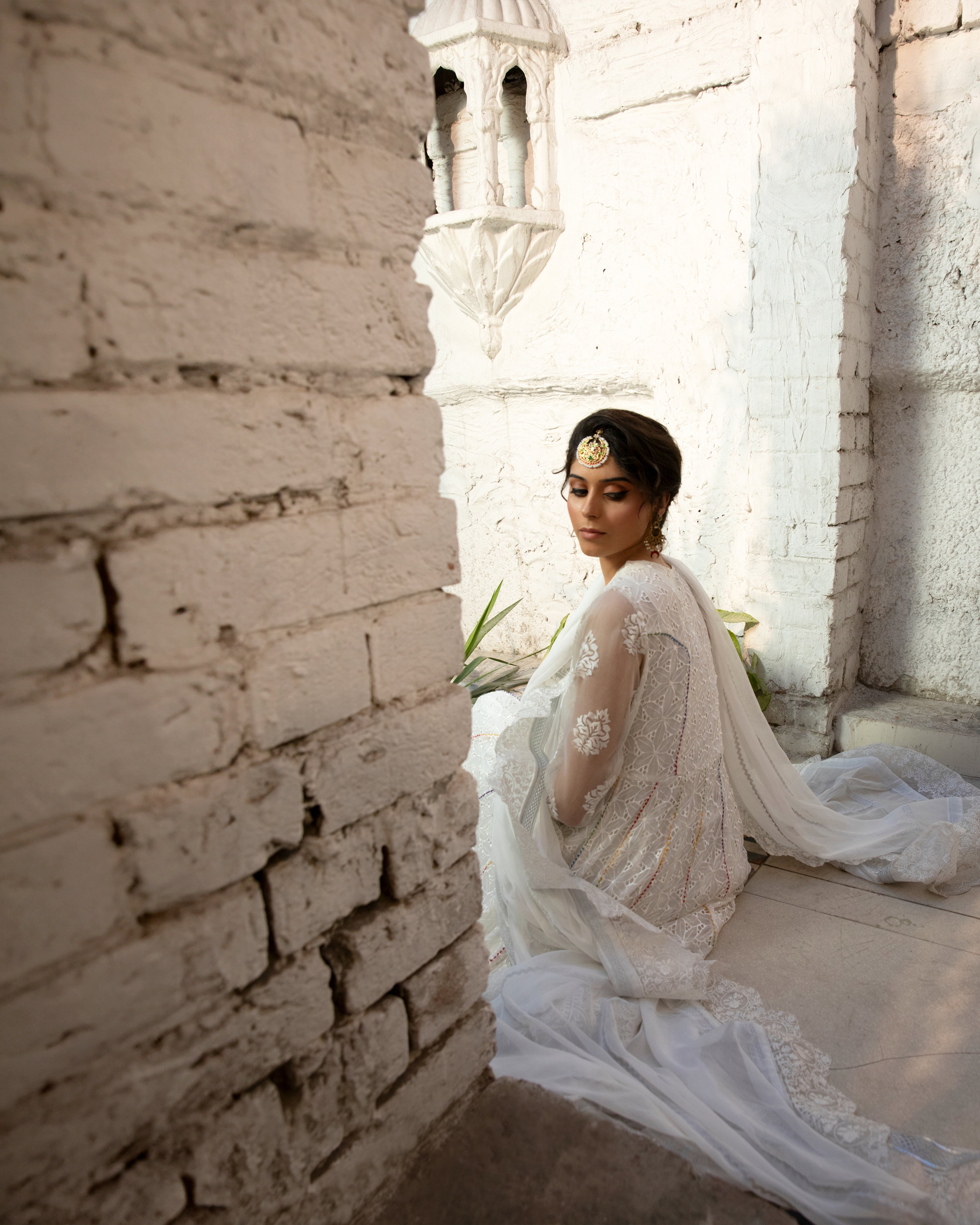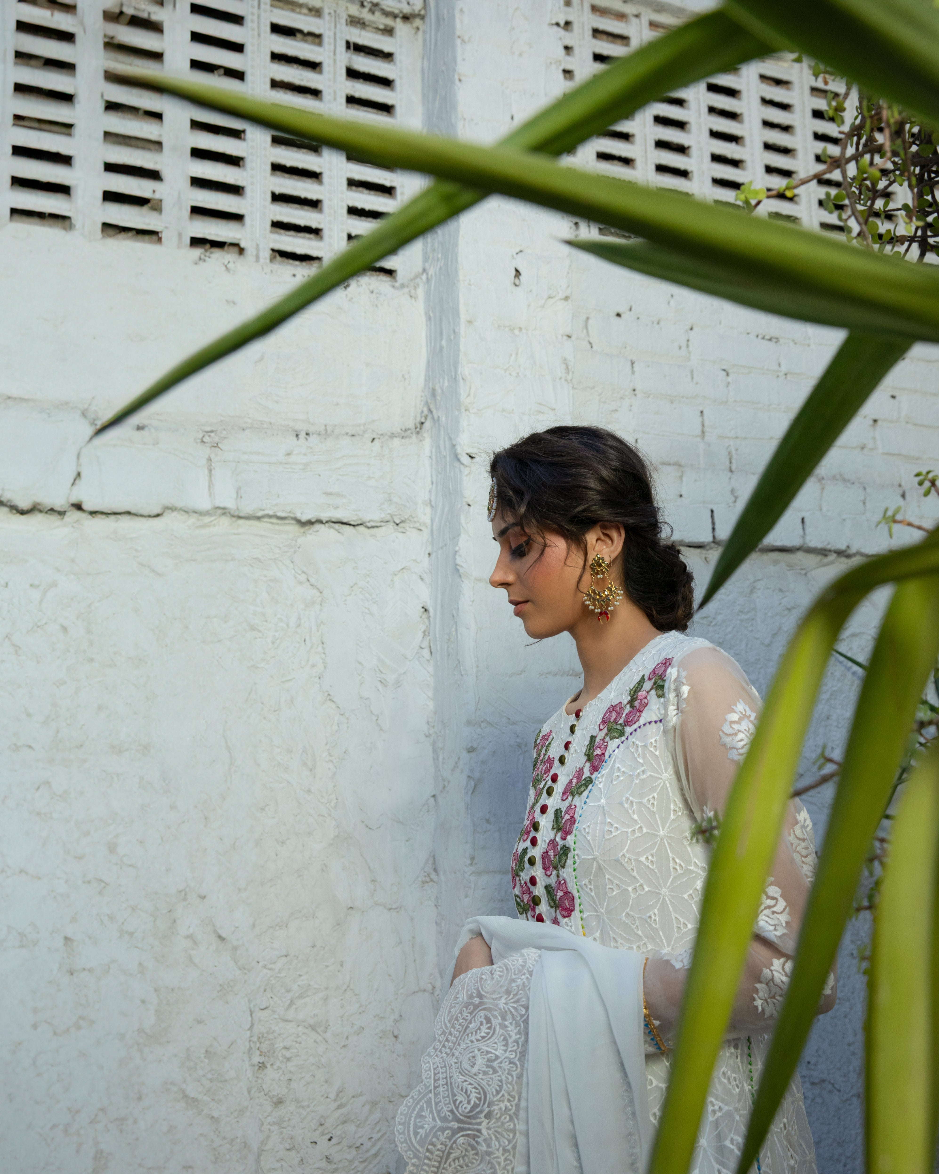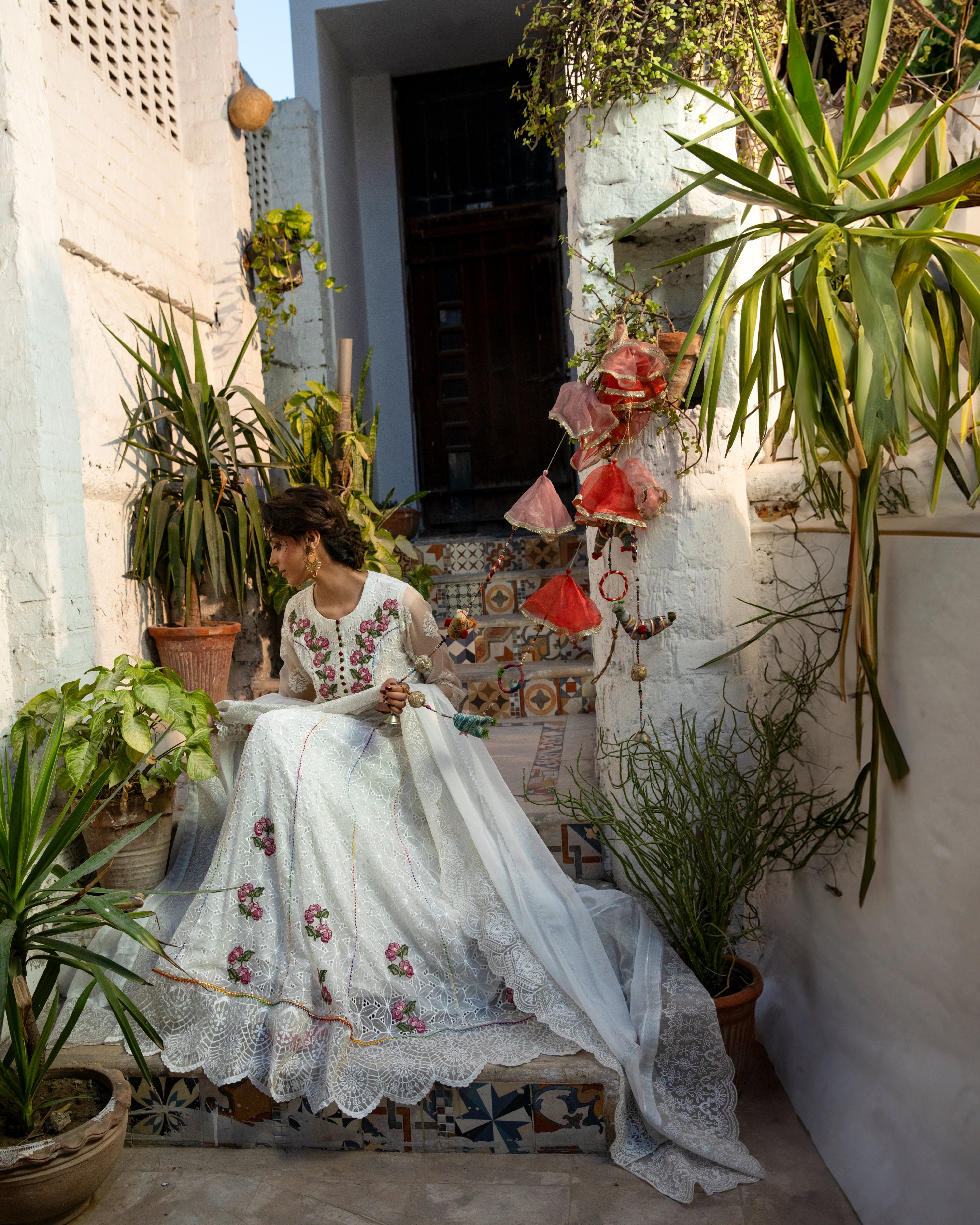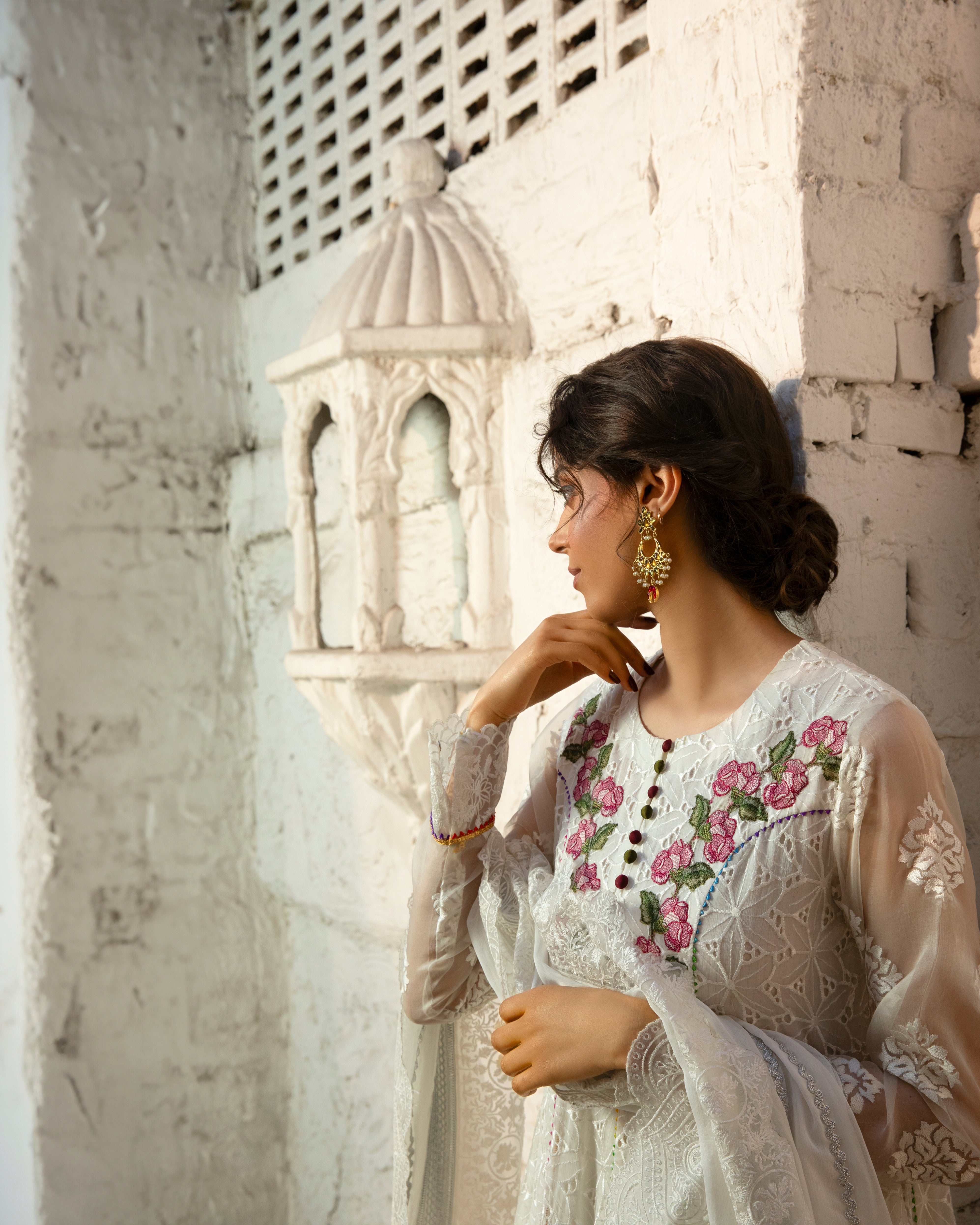 | This exquisite white frock, designed with graceful *kaliyaan* and a voluminous flair, exudes pure sophistication and charm. A perfect blend of tradition and modern grace