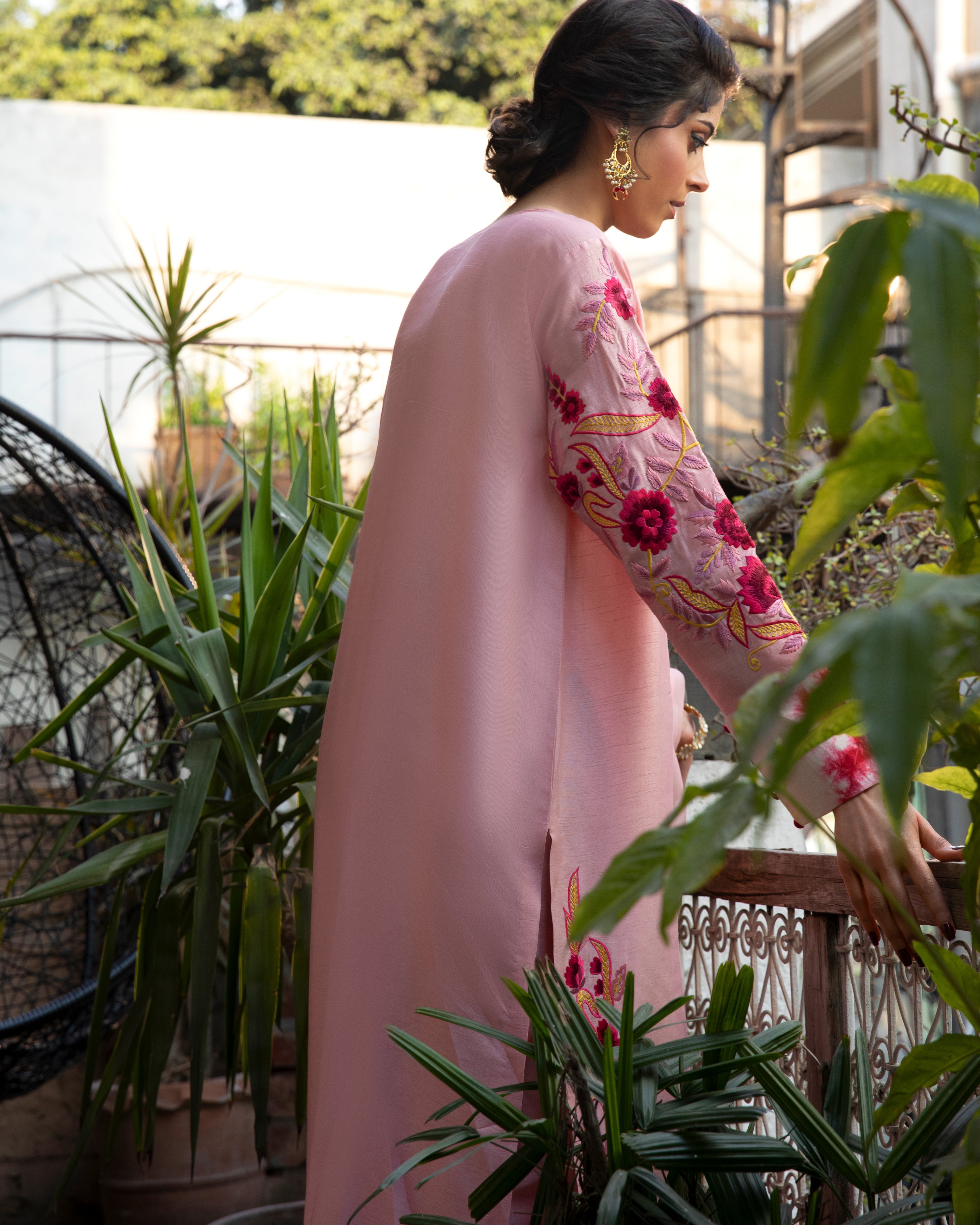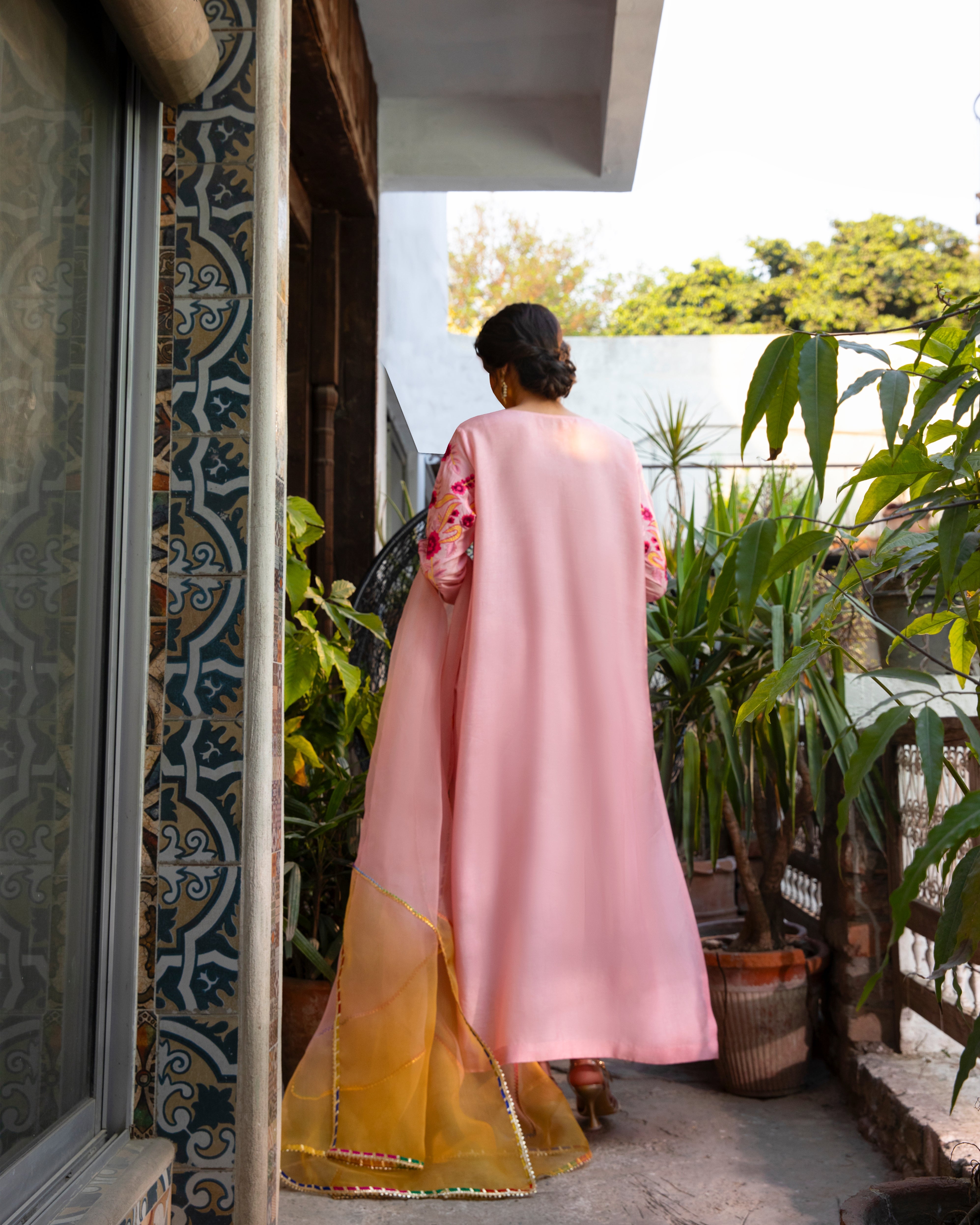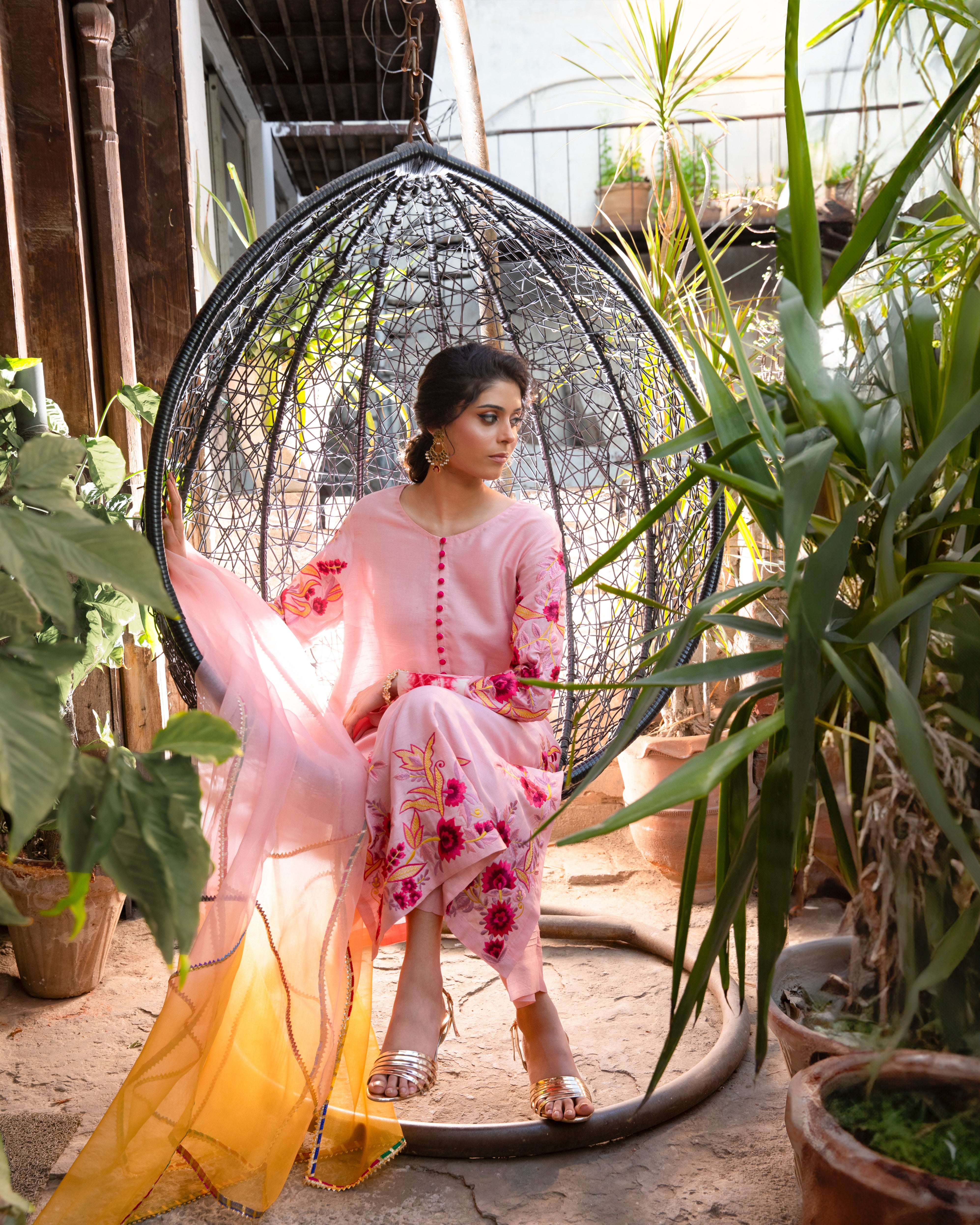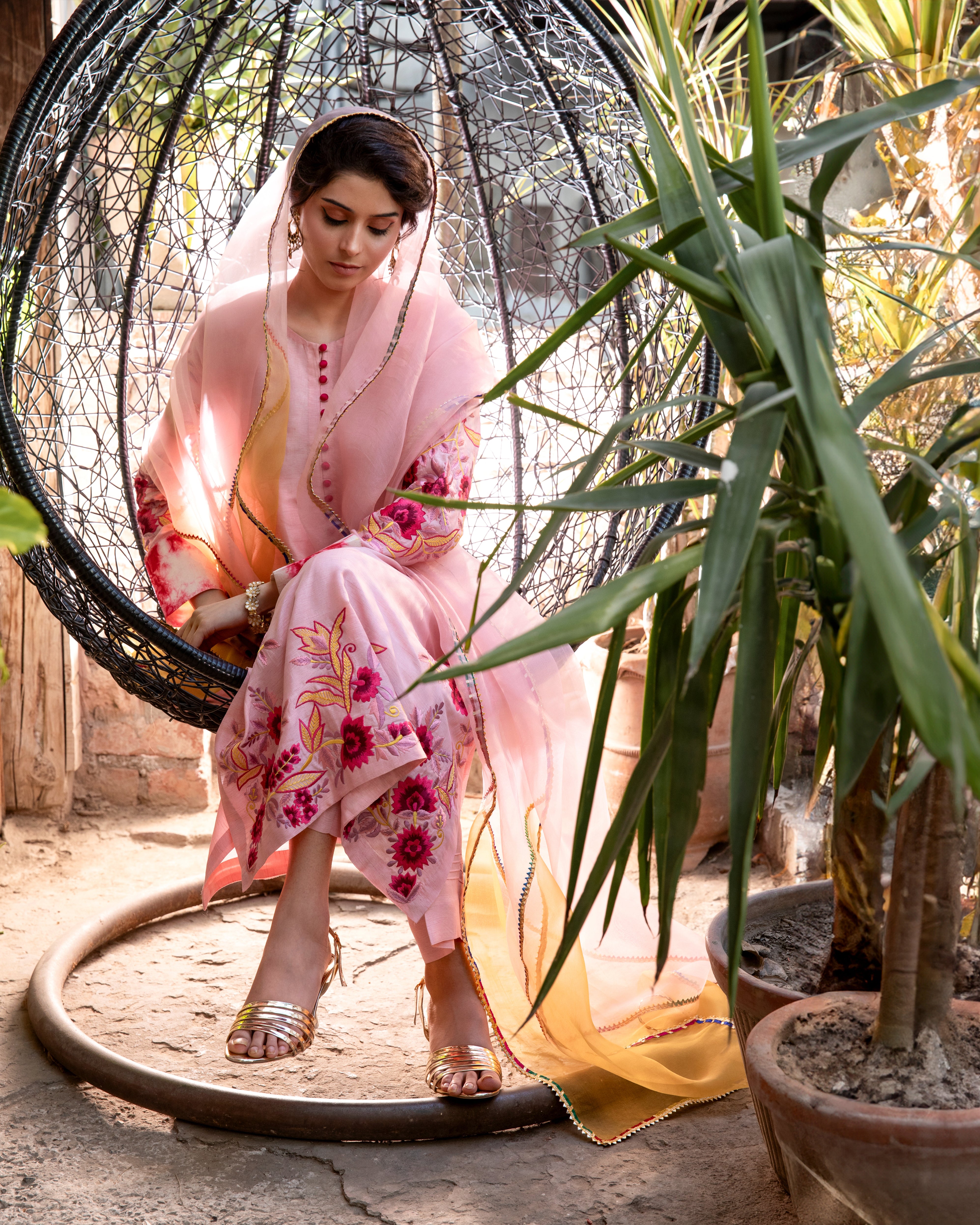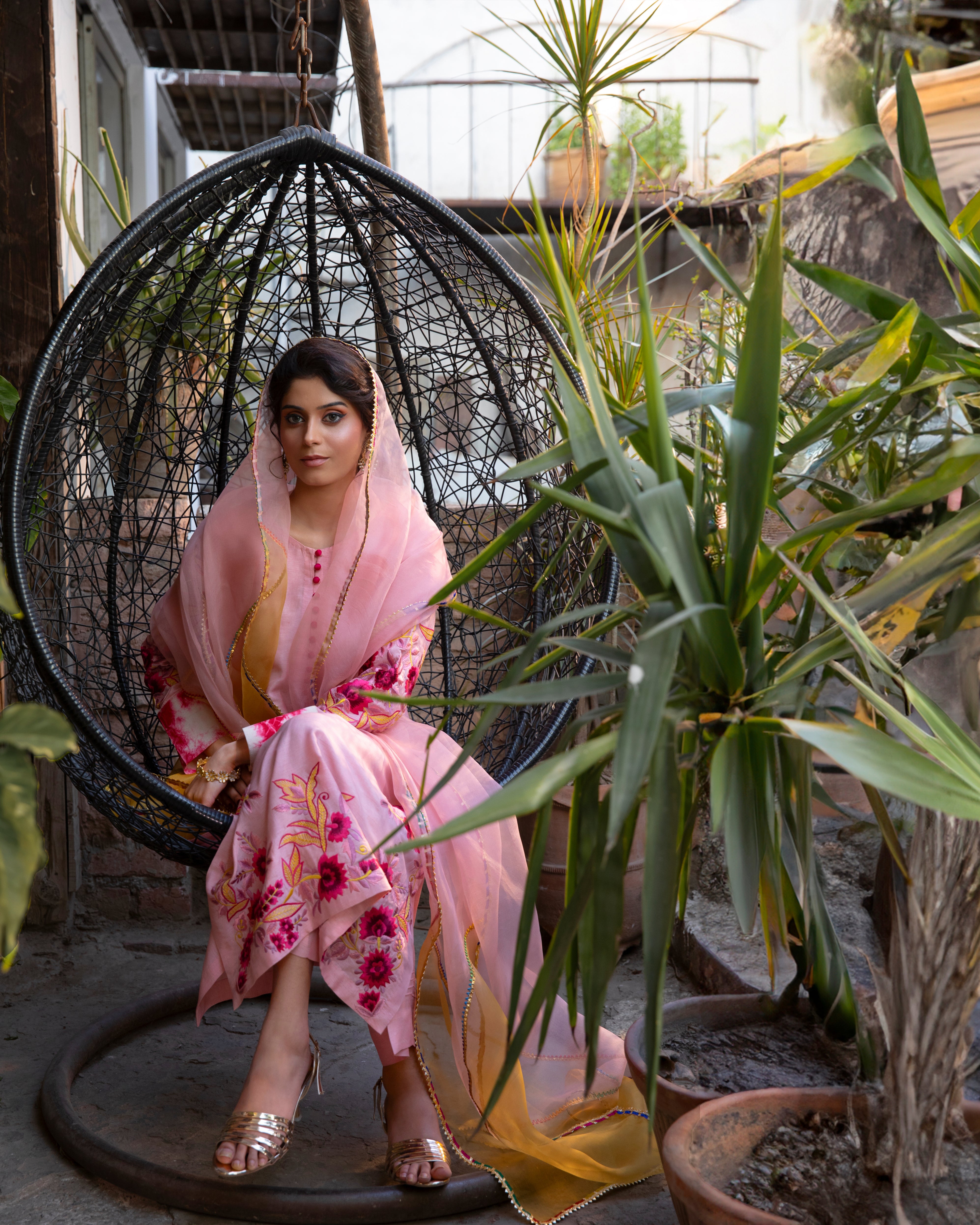 This exquisite dress showcases a beautiful Korean fabric, intricately embroidered with vibrant colors to elevate its elegance. The dress boasts a stunning pink hue, perfect for making a statement at casual and special occasions alike. It comes with a breathtaking organza dupatta, artistically designed with complementary hues to complete a stylish and sophisticated look.dsfd