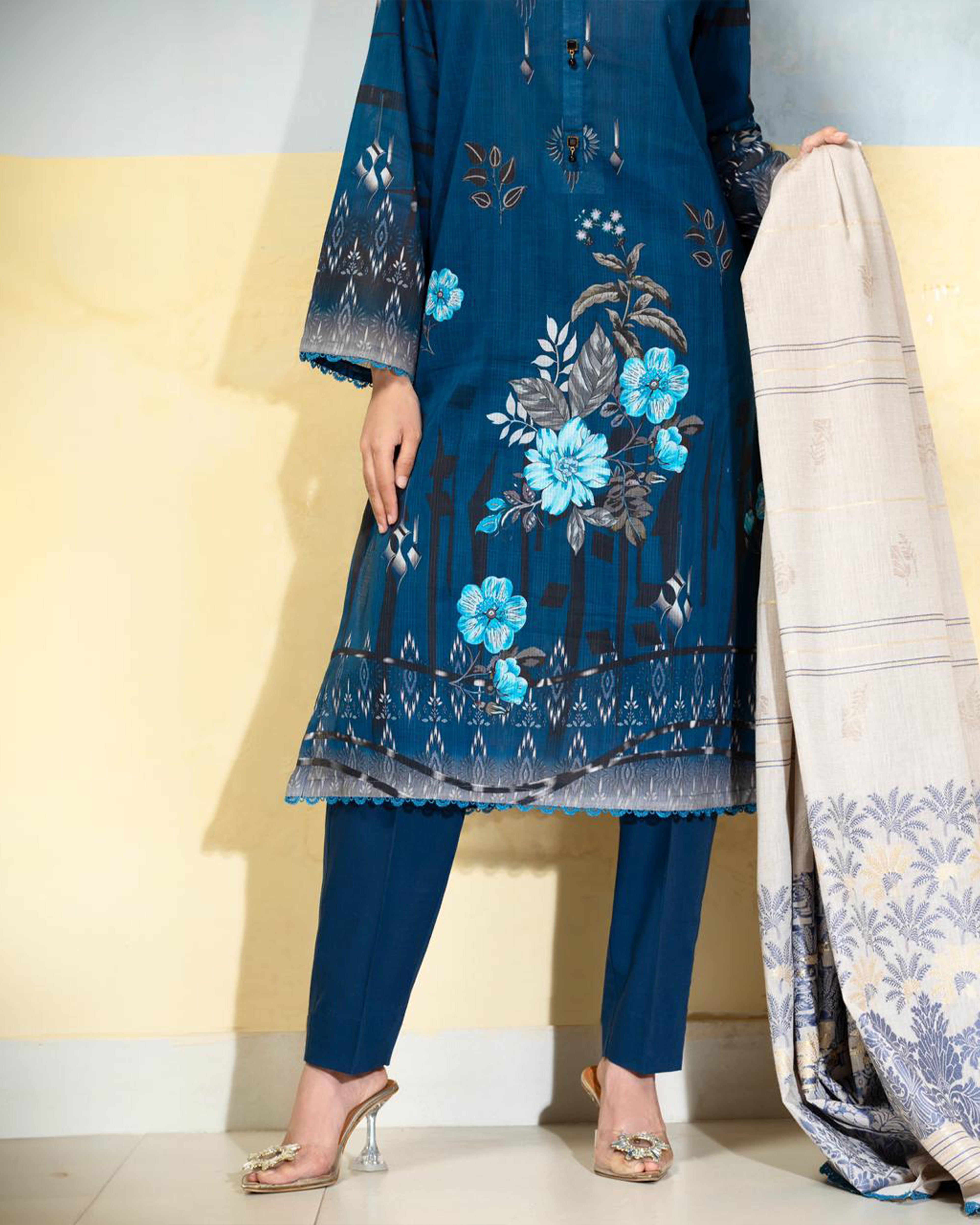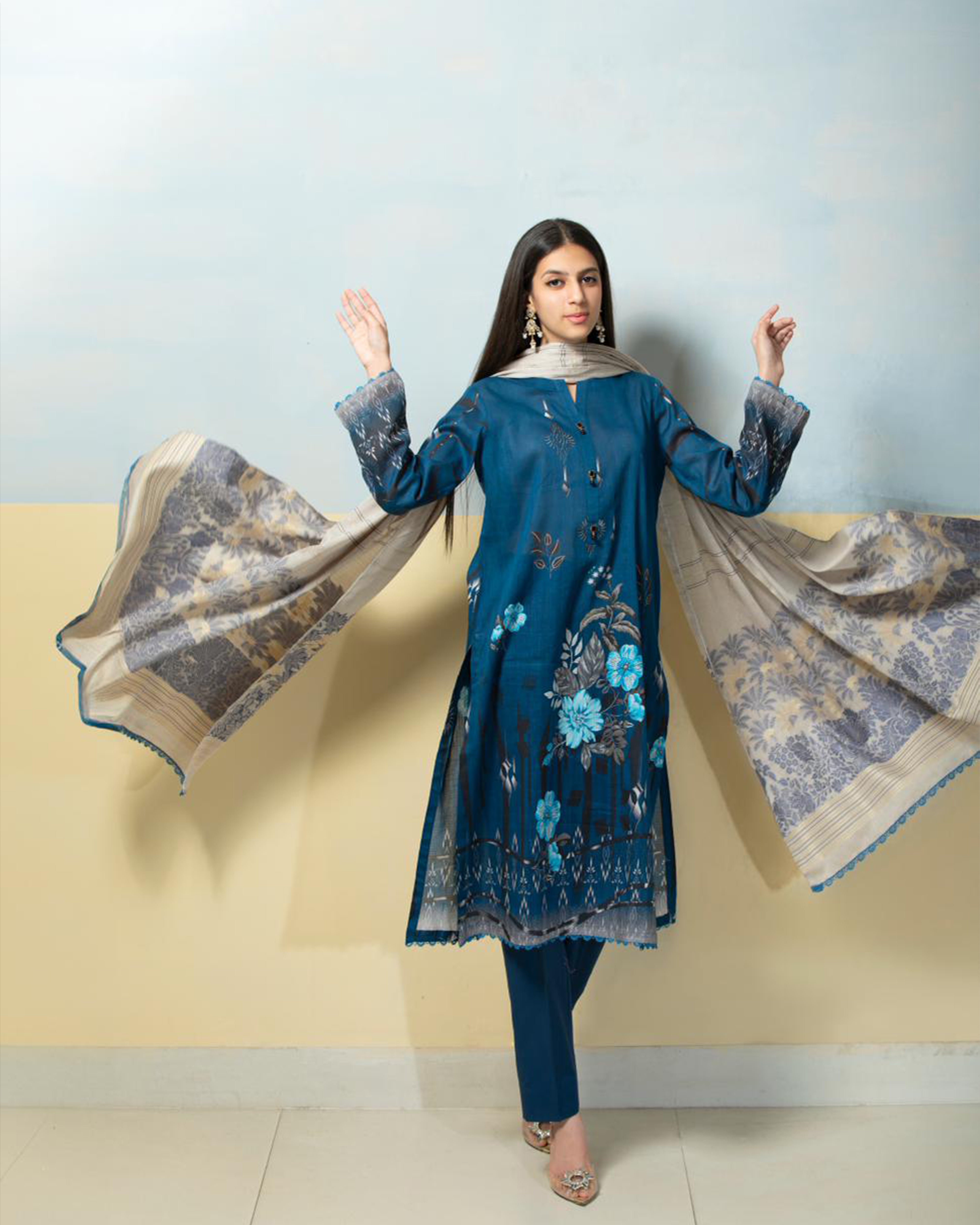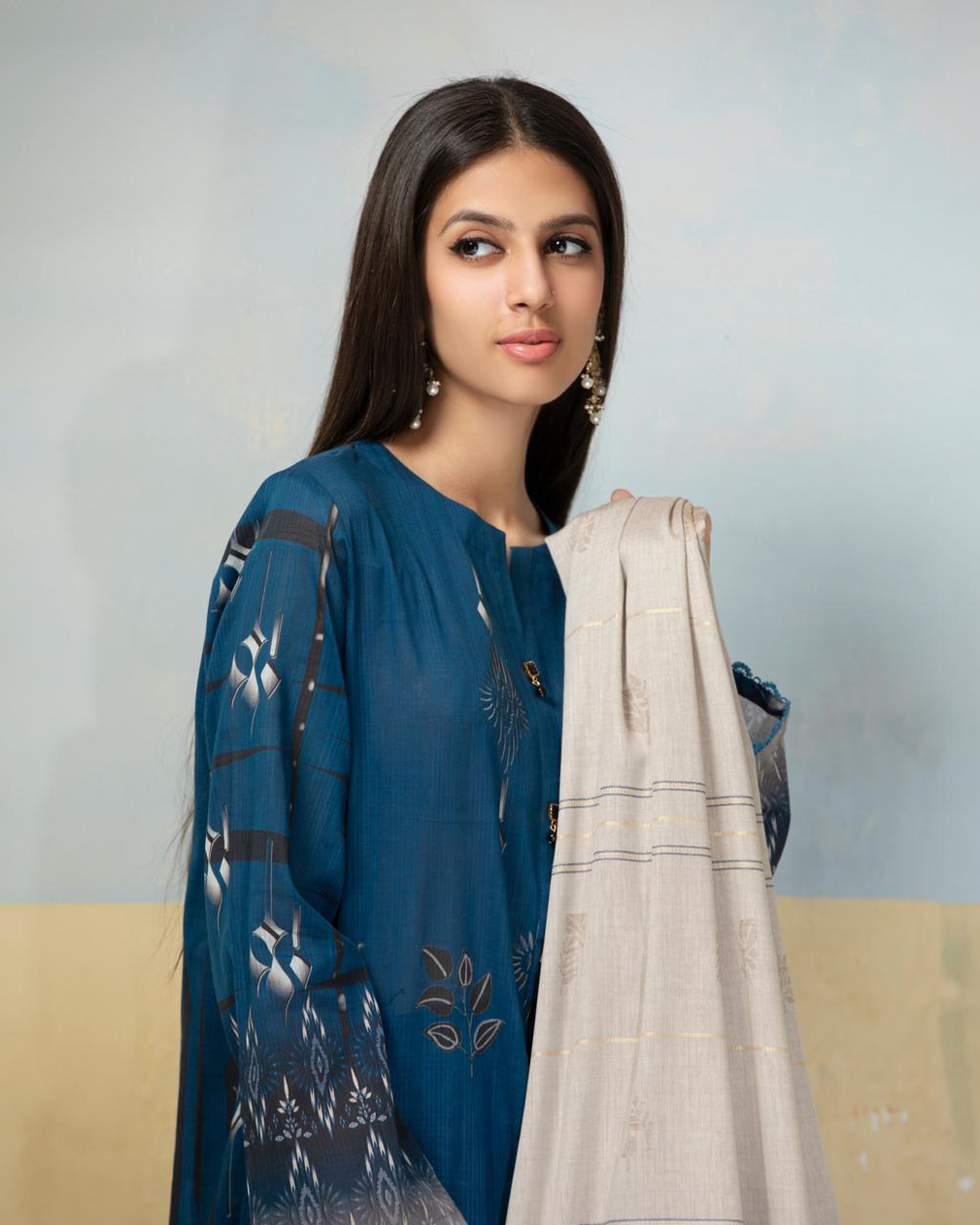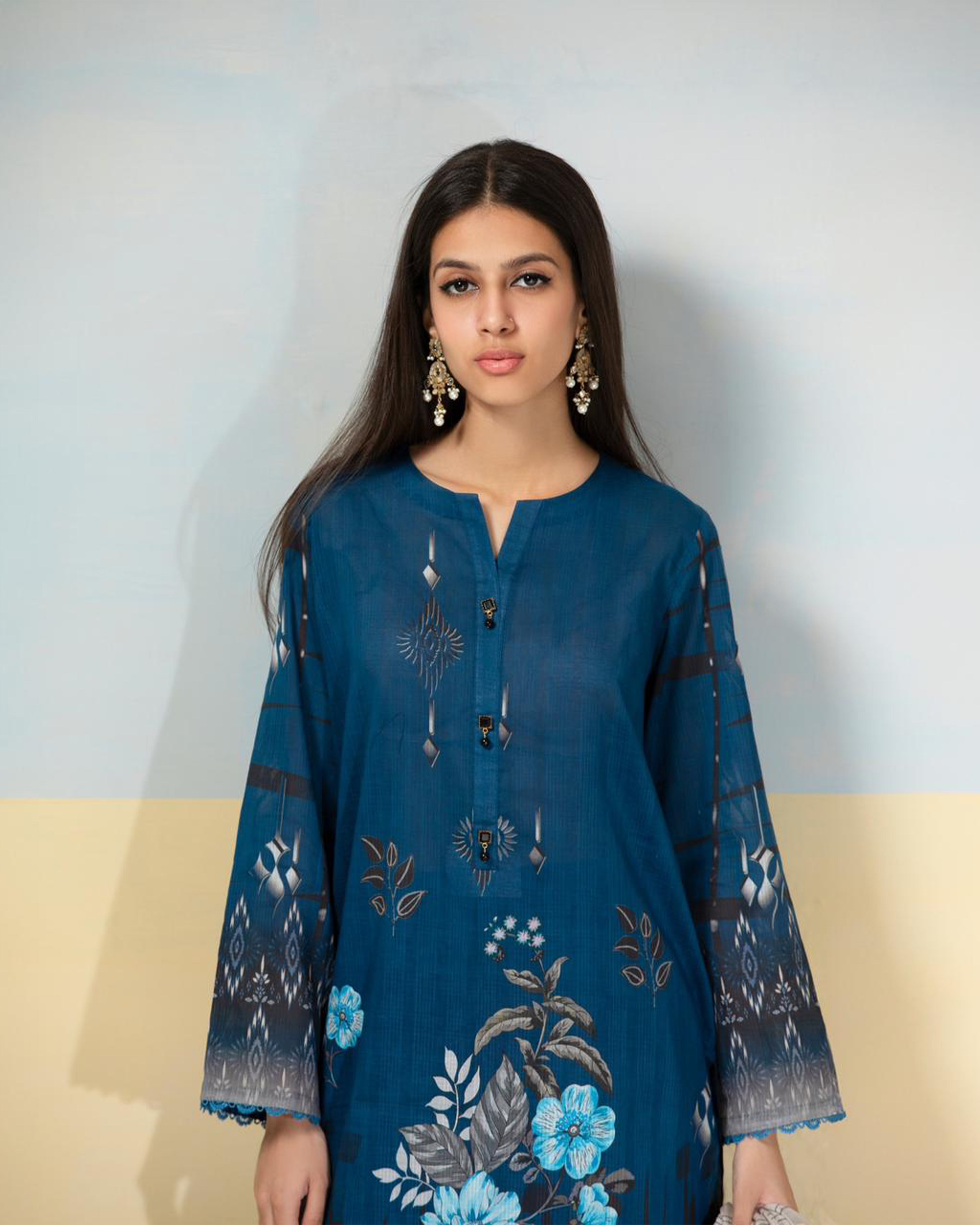 Elegance flows effortlessly in Hazal, a beautifully stitched ensemble crafted from premium Lawn in a rich, earthy brown printed pattern. The fabric’s natural texture adds depth and sophistication, while the soft, flowing silhouette ensures comfort with every wear. At the heart of its design lies a refined lace detail at the neckline, adding a graceful, feminine touch to the overall look.