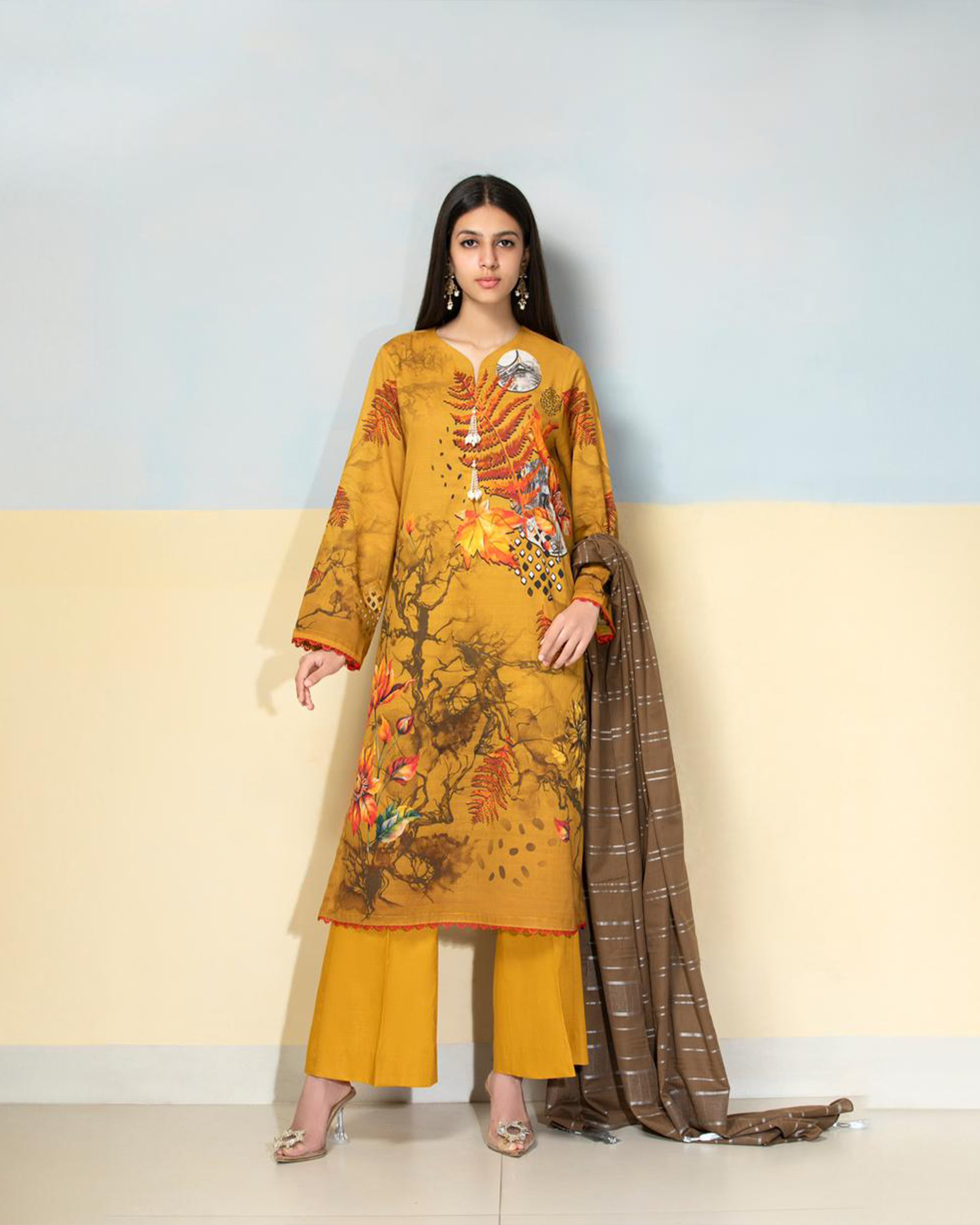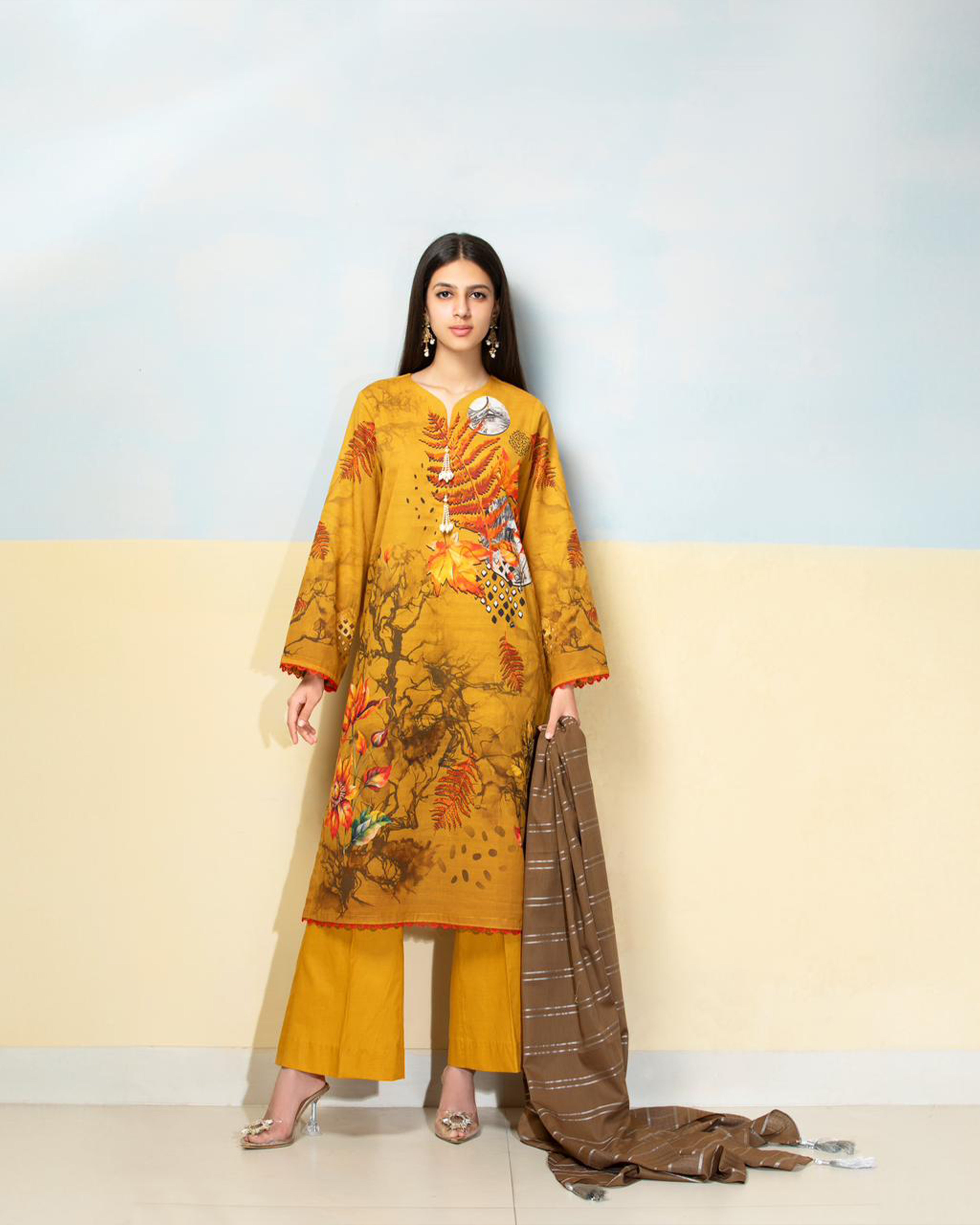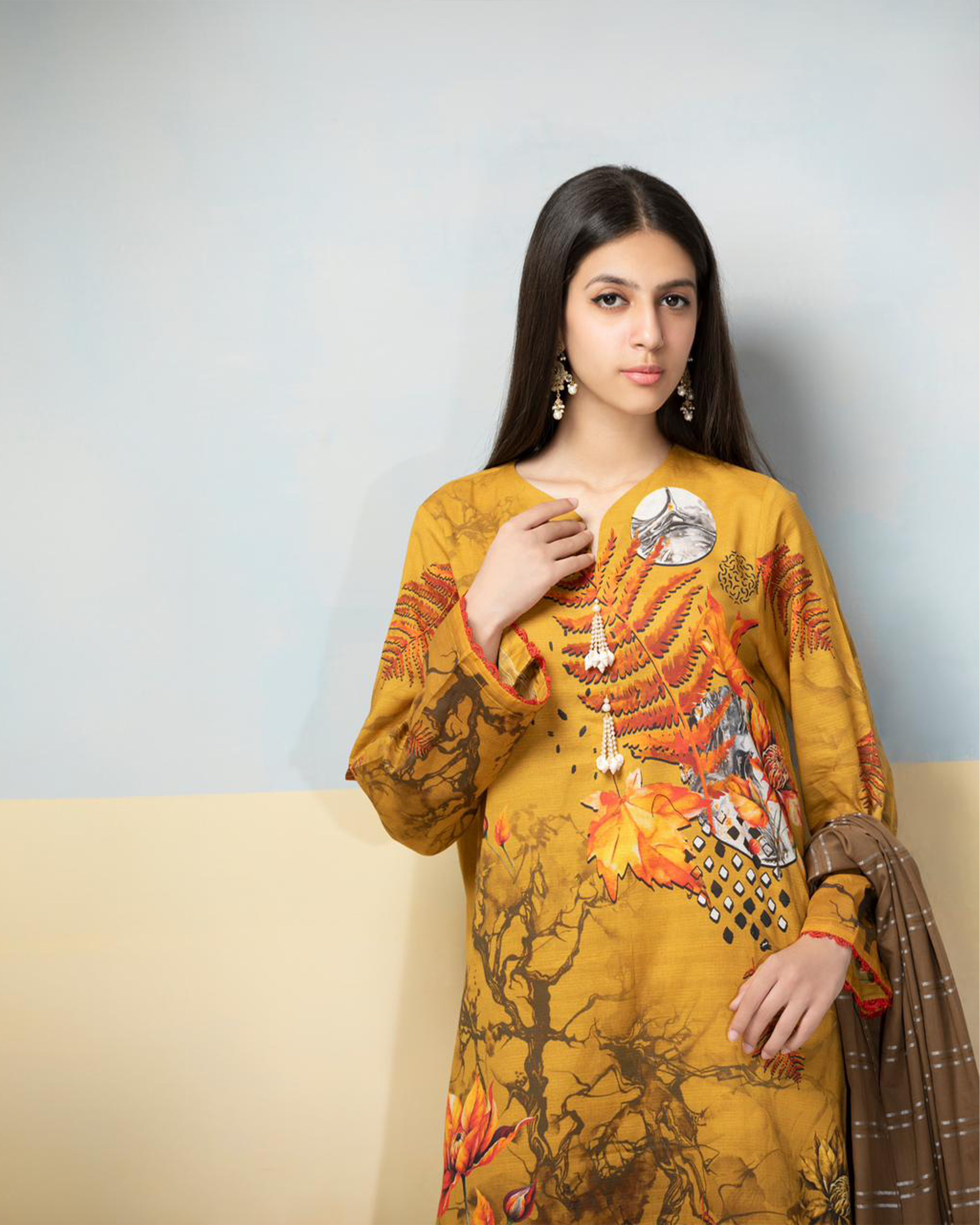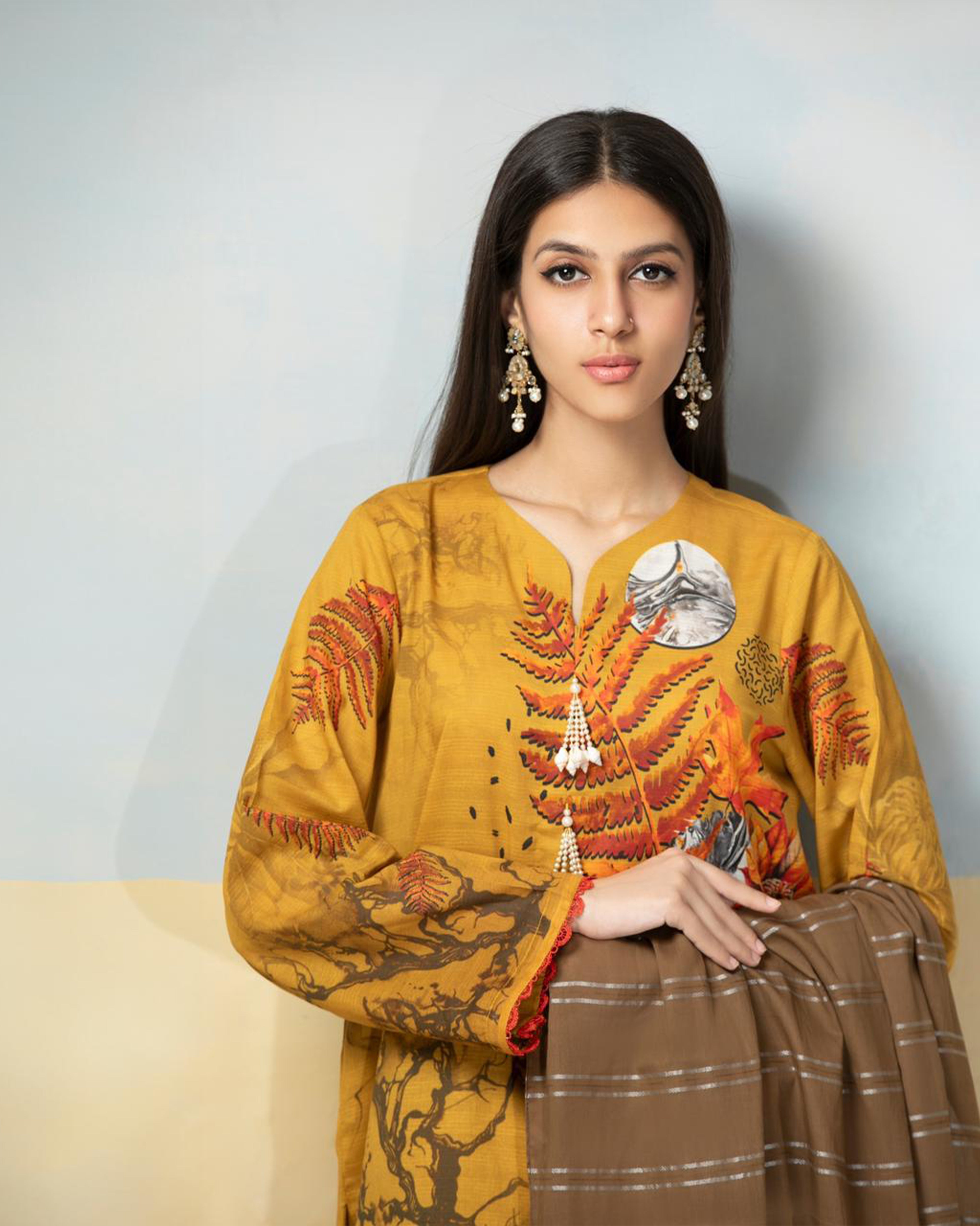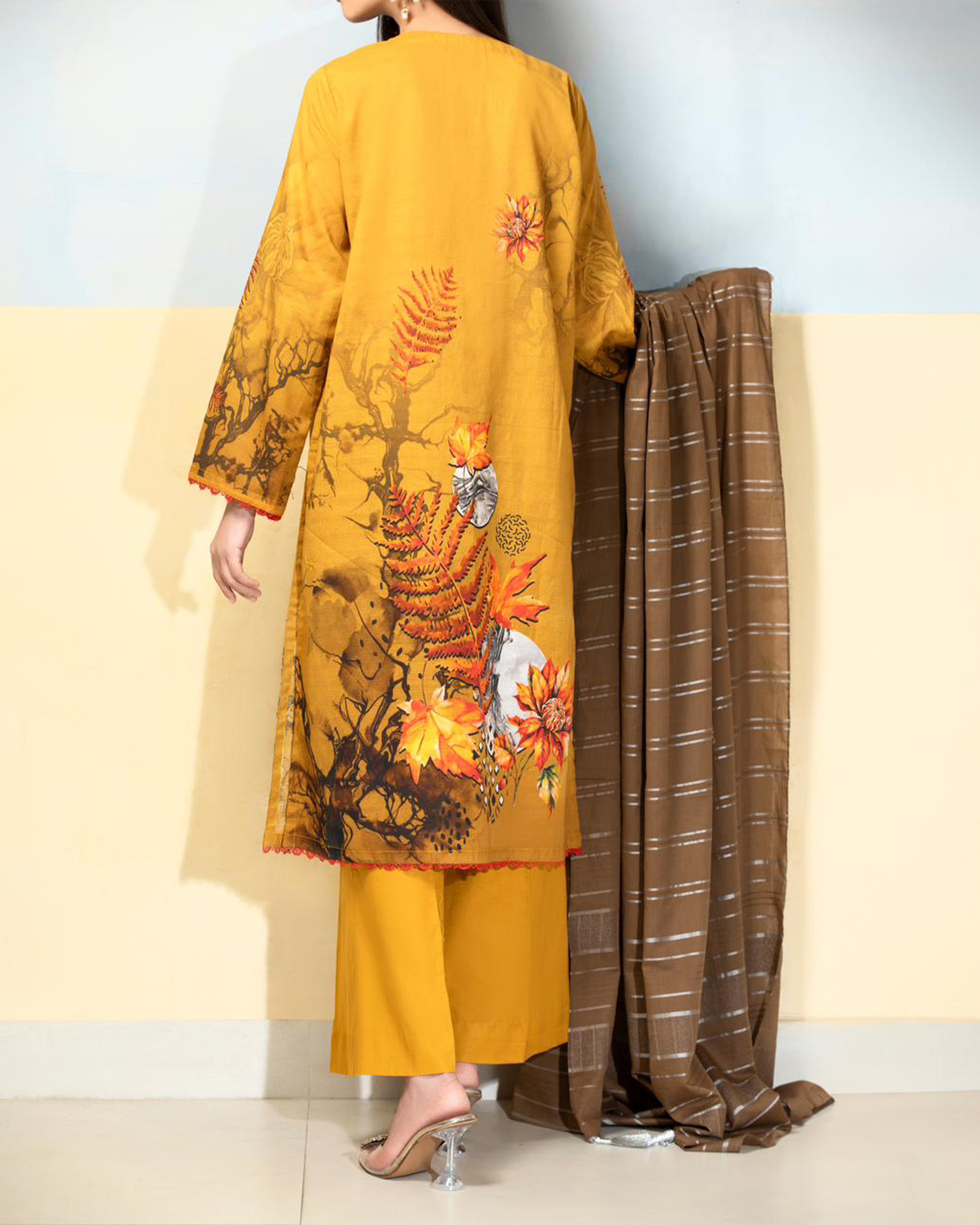 Radiating warmth and grace, Tuba is crafted from premium Lawn in a stunning yellow hue adorned with intricate prints that exude joyful sophistication. The highlight of the design is the delicate lace detailing at the center of the neckline—adding a subtle touch of femininity and finesse. With its smooth texture, elegant fall, and vibrant color story, Tuba is perfect for festive brunches, daytime gatherings, or elegant casuals that make a lasting impression.