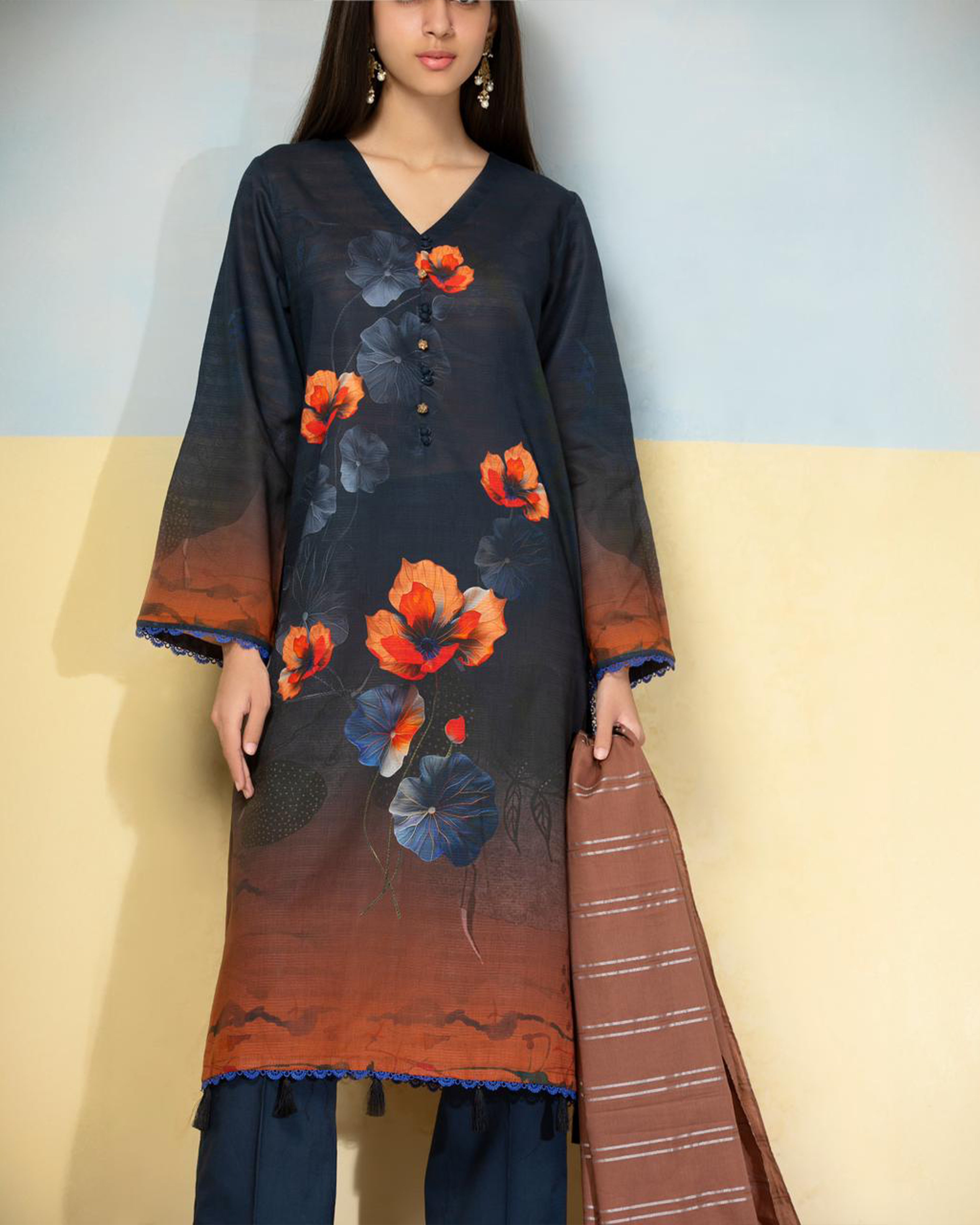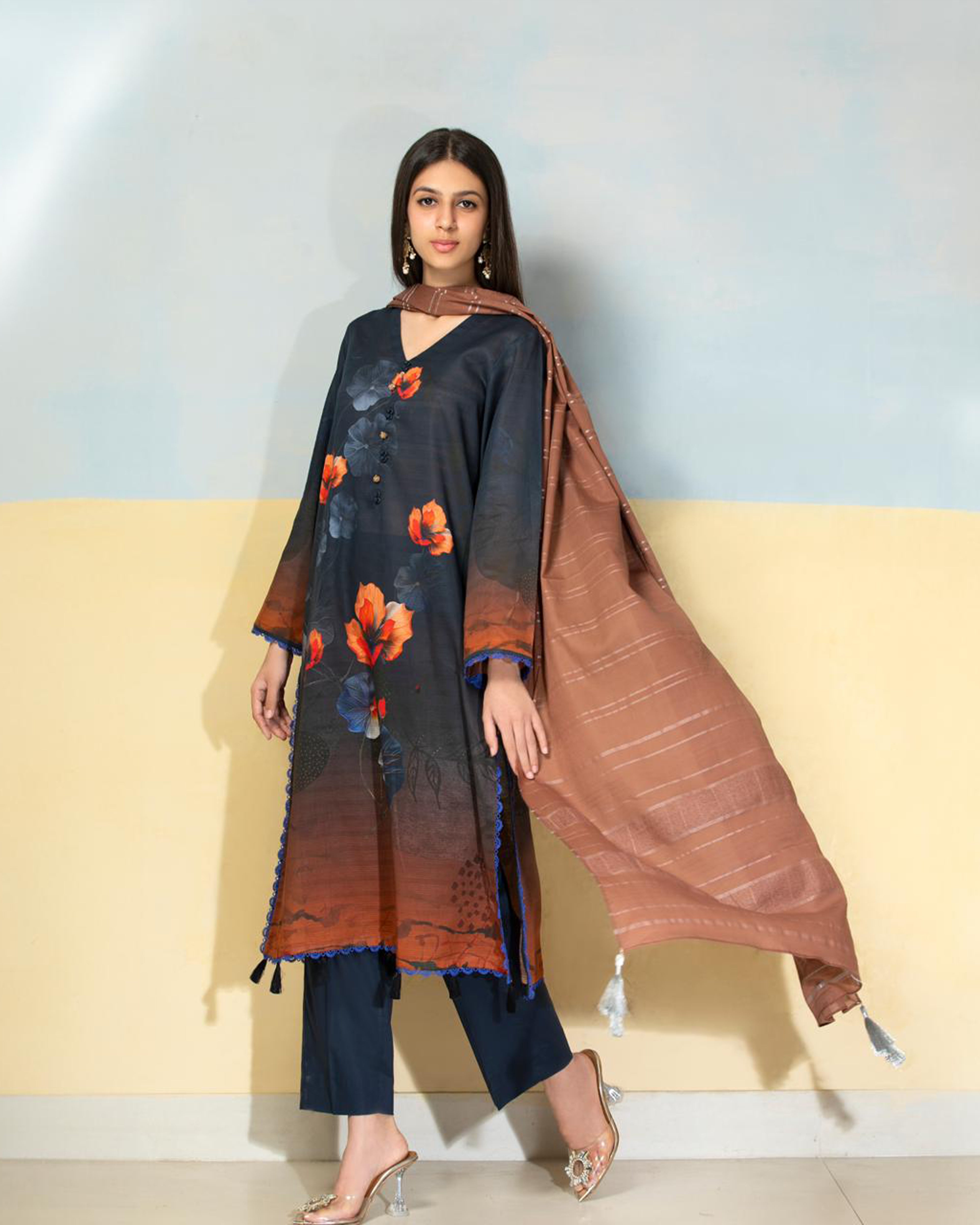 Radiate effortless charm with Zeliha, a statement piece from our premium collection. Crafted from Premium Lawn, this stitched ensemble features a vibrant yellow base adorned with graceful prints that capture the warmth of the season. The true highlight lies in the delicate lace detailing at the center of the neckline, adding a touch of sophistication to its playful tone. Perfect for daytime events, festive lunches, or intimate gatherings, Zeliha blends classic texture with modern femininity for a look that’s both fresh and timeless